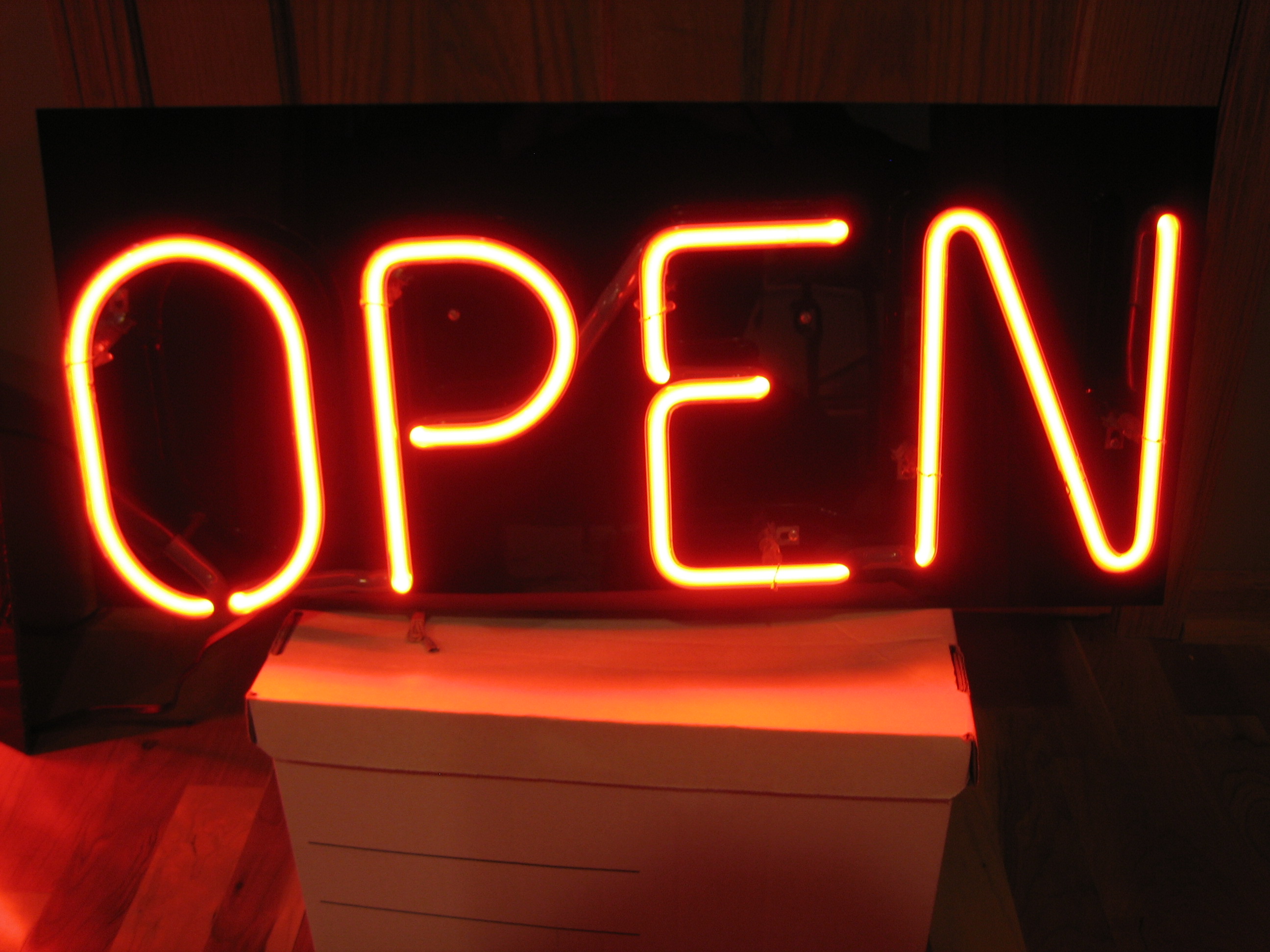. large "OPEN" neon sign$100larger than your normal "OPEN" sign. Custom from a custom neon shop